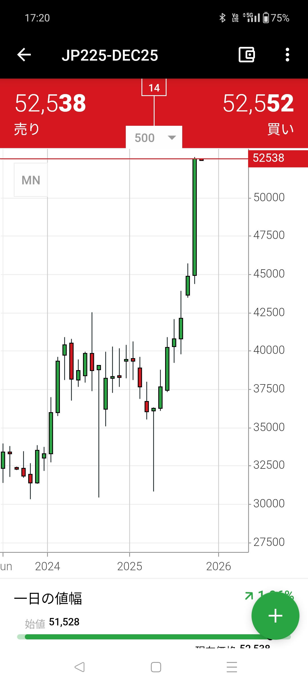 1ヶ月で7,750円も上昇した日経平均株価の月足を見ようぜ FX相場のリアルタイム情報2025 X Mastodon Bluesky Misskey Facebook はてブ Pocket LINE Pinterest LinkedIn コメント 2025.10.31 サナエノミクスに沸いている日本。日経平均株価の値幅を調べてみると10月は7,750円も上昇していました。壮観なローソク足です。落ちる時も同じことが起きるなら天井ショートを狙いたいところ。でもまだですね。来年の5月くらいになれば情勢が変わってるかな。長期では来年の夏以降にやっと円安が終わると考えてる。期間限定XMTRADINGの入金ボーナスプロモ 新着情報 2025年11月7日 NEW! FXポジション比率 11月7日金曜日18時 2025年11月7日 NEW! ドル円のちょうどいい押し目を拾った 2025年11月6日 NEW! FXポジション比率 18時50分時点 2025年11月6日 NEW! 全部押し目だと信じる心で勝てる 2025年11月6日 NEW! 気づいたらまた上を目指してるドル円は鉄板のロング 2025年11月5日 NEW! 大暴落の初動だったらどうしよう 2025年11月4日 NEW! FXポジション比率が的中してた 2025年11月4日 NEW! Lした途端に下げるドル円、このままじゃロスカット 2025年11月3日 NEW! 文化の日はスローFX 2025年11月2日 11月からは冬時間適用でFXは午前7時オープンになります 2025年11月1日 ドル円の逆張りが増えた! 2025年10月31日 1ヶ月で7,750円も上昇した日経平均株価の月足を見ようぜ FXGT.com 取引量に応じてFXGT公式からキャッシュバックを獲得できます。 IS6FX 口座開設して予備にしておきたい海外FX業者。 ブログのトップページへ戻る