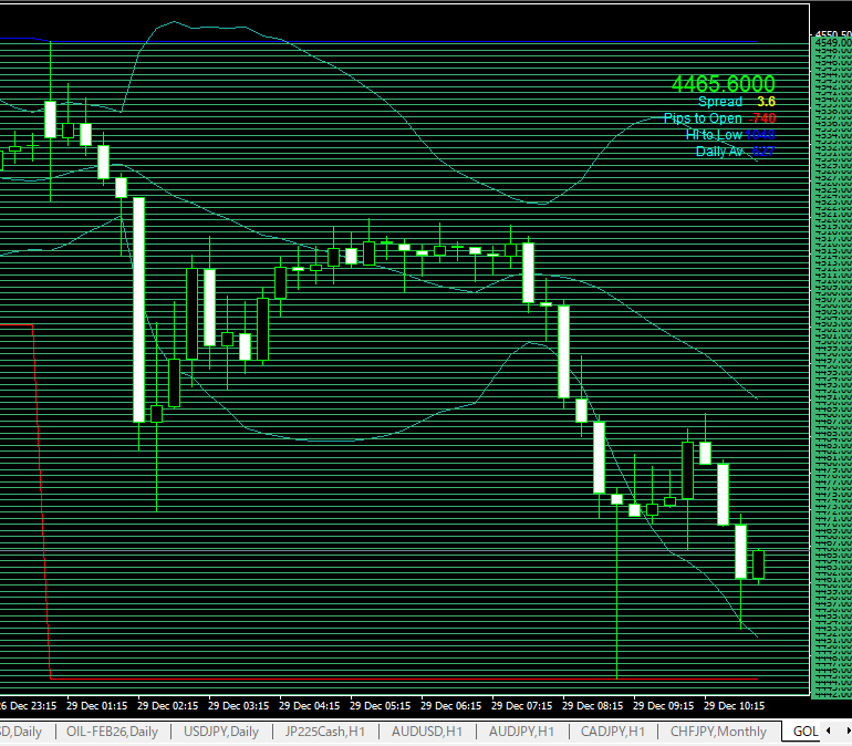 10pips置きにラインを引いたGOLDの15分足チャートです。
