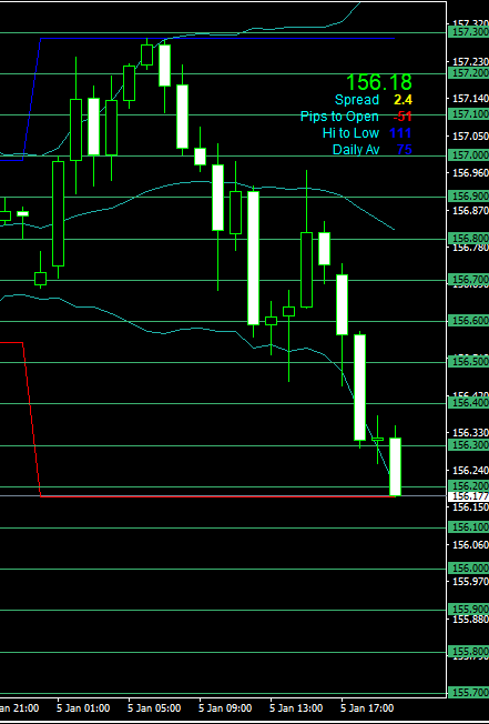 ドル円の1時間足チャートはトレンド転換して円高に。
