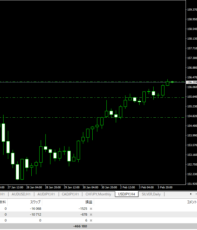為替介入とか衆院選とかどうでもよくなるロスカット間近 FX相場のリアルタイム情報2026 X Mastodon Bluesky Misskey Facebook はてブ LINE Pinterest LinkedIn コメント 2026.02.04ショートを入れるのが早かった。衆院選結果で動くのが9日月曜日なのに今日はまだ4日水曜日。そして為替介入が来る気配はなし。含み損が貯まってきて諦めたくても下落チャンスがないと切れないポジションになってしまった。157円まで待ってみる。果たして衆院選よりも早く介入に動いてくれるだろうか。ショートの逆指値が原因で猛烈に上げることが考えられる。含み損の時はいつもメンタル崩壊。XMならマイナス残高になってもゼロカット制度で追証なし!為替介入対策に最強の口座 当サイトのXMパートナーコードはX96FB(エックスきゅうろくエフビー)です。 口座開設時に連絡不要!誰でも使っていただいて大丈夫です。 XMトレーダーの海外FXブログ 新着情報 2026年2月4日 NEW! 為替介入とか衆院選とかどうでもよくなるロスカット間近 2026年2月3日 NEW! 話が違うよ!為替介入が来ない 2026年2月3日 NEW! 成長力抜群!日経暴騰は自民党が衆院選で単独過半数になることを見込んでる 2026年2月2日 NEW! XM Tradingの早春入金ボーナスキャンペーンが始まりました 2026年2月2日 NEW! GOLDが下落したからトレードするなら今! 2026年2月2日 NEW! XM Tradingのドル円ショートスワップこれだけ 2026年1月31日 NEW! 為替介入の新手法レートチェックならドル円がどこまでも円高になる 2026年1月30日 ポンド円下落!そして買われる 2026年1月29日 FOMCに遅刻したけどまだパウエル会見やってる 2026年1月28日 FXポジション比率 1月28日水曜日14時42分時点 2026年1月28日 為替介入で爆儲けできるのにドル円ショートをまだしてない 2026年1月27日 FXポジション比率 1月27日火曜日午前7時20分時点 2026年1月26日 ぱっと見ドル円チャートを作ったからどこまで落ちるかすぐ分かる 2026年1月25日 能天気ポジション比率を見てみよう 2026年1月24日 レートチェックで下げるなら本番の為替介入は日米ダブルで10円下げだぞ FXGT.com 取引量に応じてFXGT公式からキャッシュバックを獲得できます。 IS6FX 口座開設して予備にしておきたい海外FX業者。 ブログのトップページへ戻る