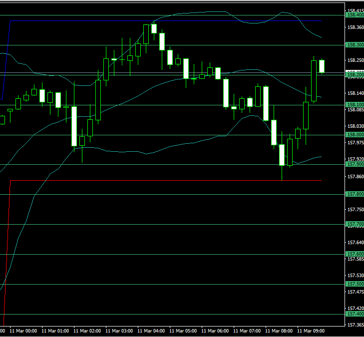 ドル円は158円台キープ。